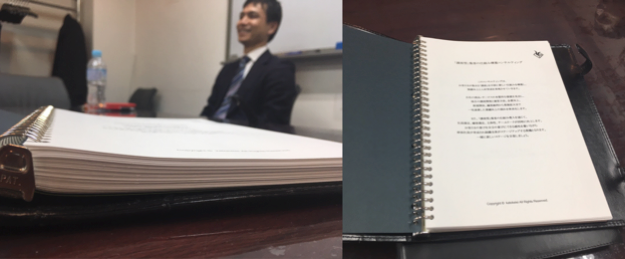 ちなみに、コンサルティングではこんなに厚みのあるコンサルブックを用いて、加藤経営のメソッドの基礎や根幹から学びます。